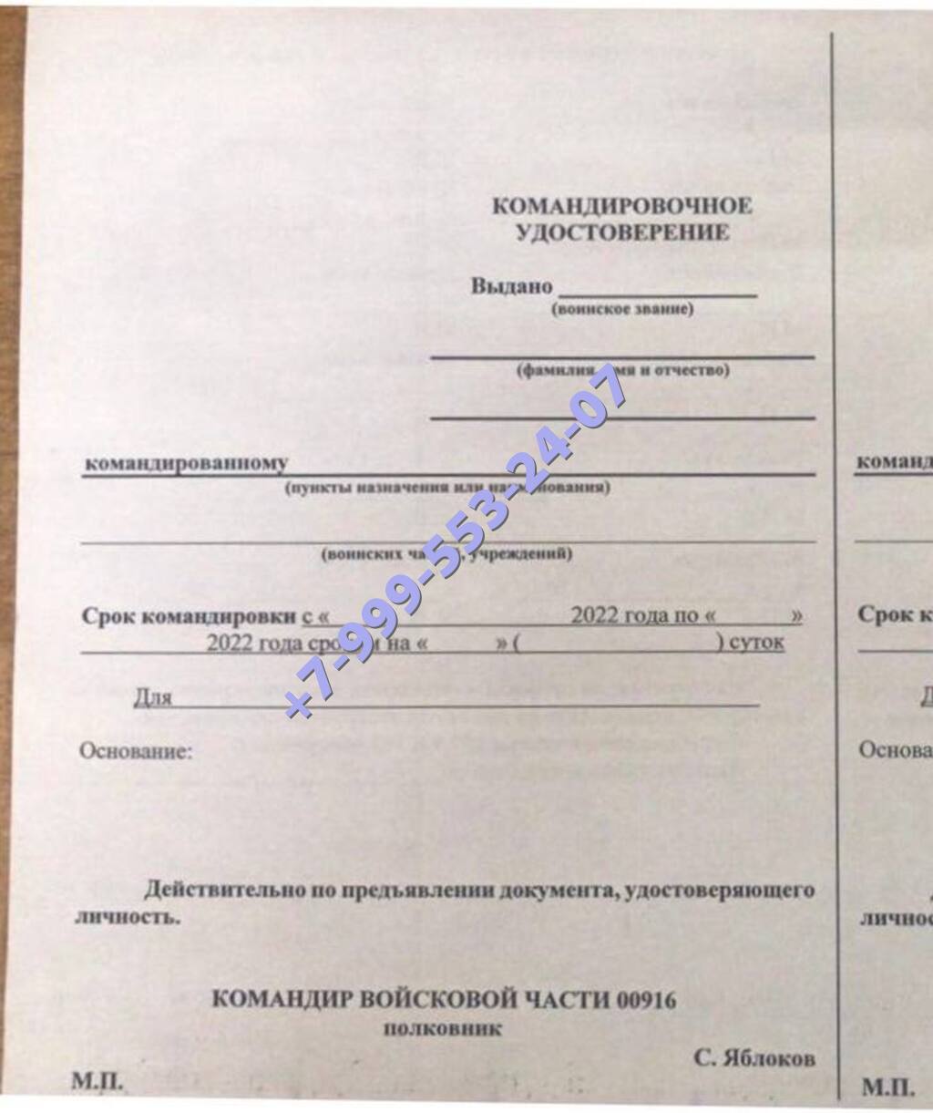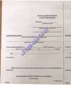 Заказать командировочное удостоверение военнослужащего в Любиме можно и по иным причинам, например, необходимо срочно ехать на учения или в зону боевых действий. В таком случае следует обращаться к руководству с заявлением. Если человек потерял, или испортил документы, он может обратиться в нашу компанию. Купить командировочное удостоверение военнослужащего с доставкой мы предлагаем недорого.